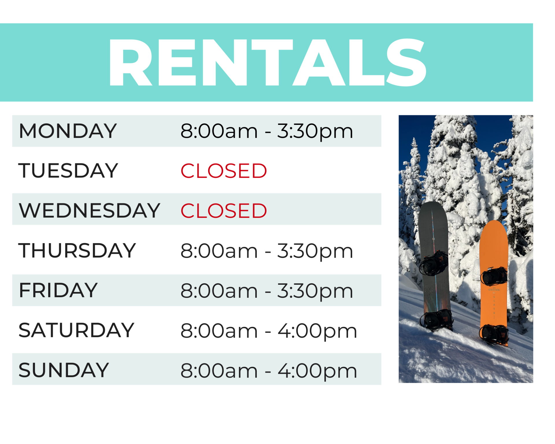 **Now Open Mondays** Lifts Spin Thursday - Monday. Spring Conditions in January!